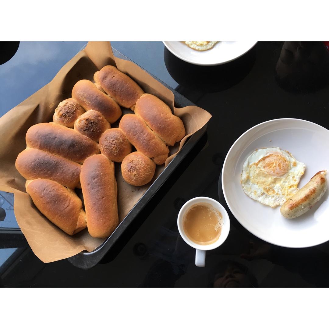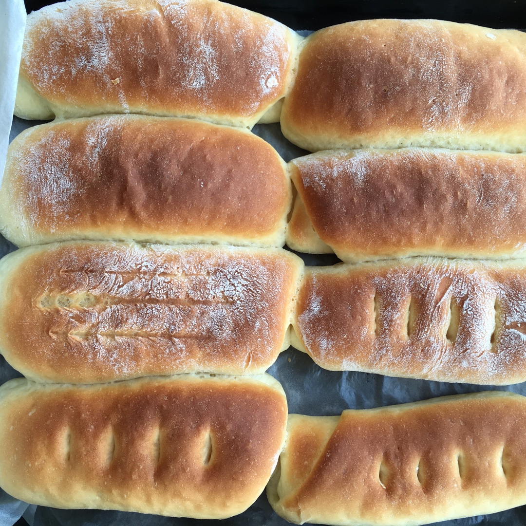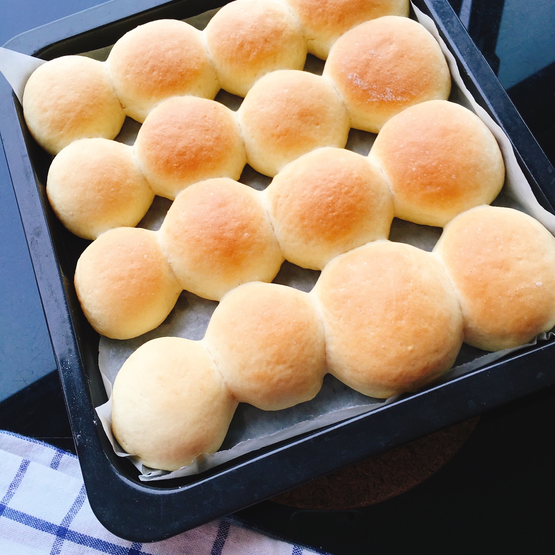 夏天适合烤面包,发酵好快!今天换了一个形状,每个45g左右,一人吃一个刚刚好😊
