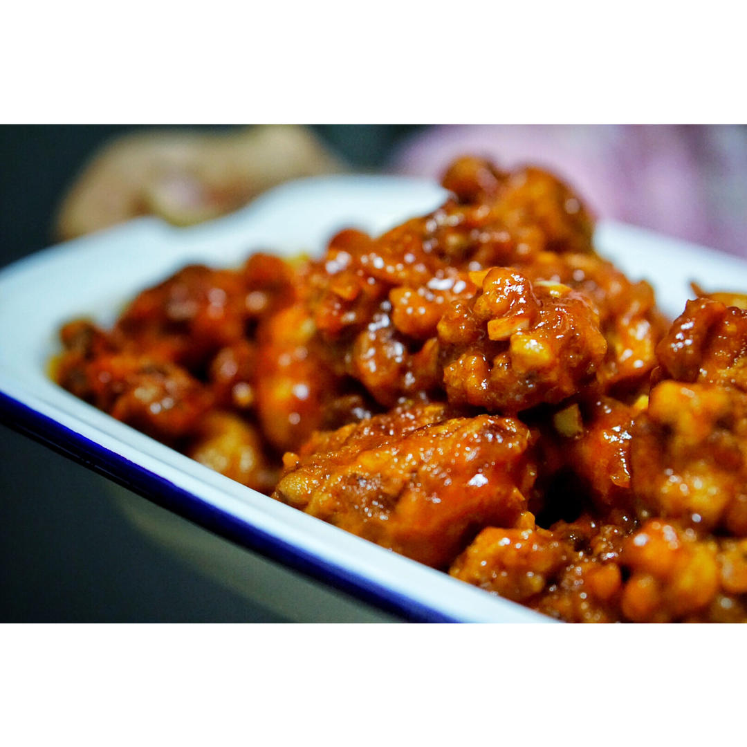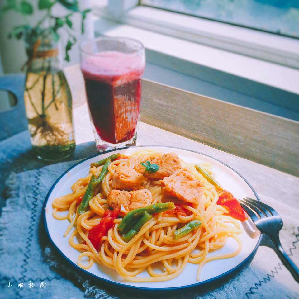不是按菜谱做的,不爆油,直接调汁放材料炖的,减少油脂量,为配合夏季清爽口感加了番茄沙司,小妞最爱这口😁 #午餐•2016...