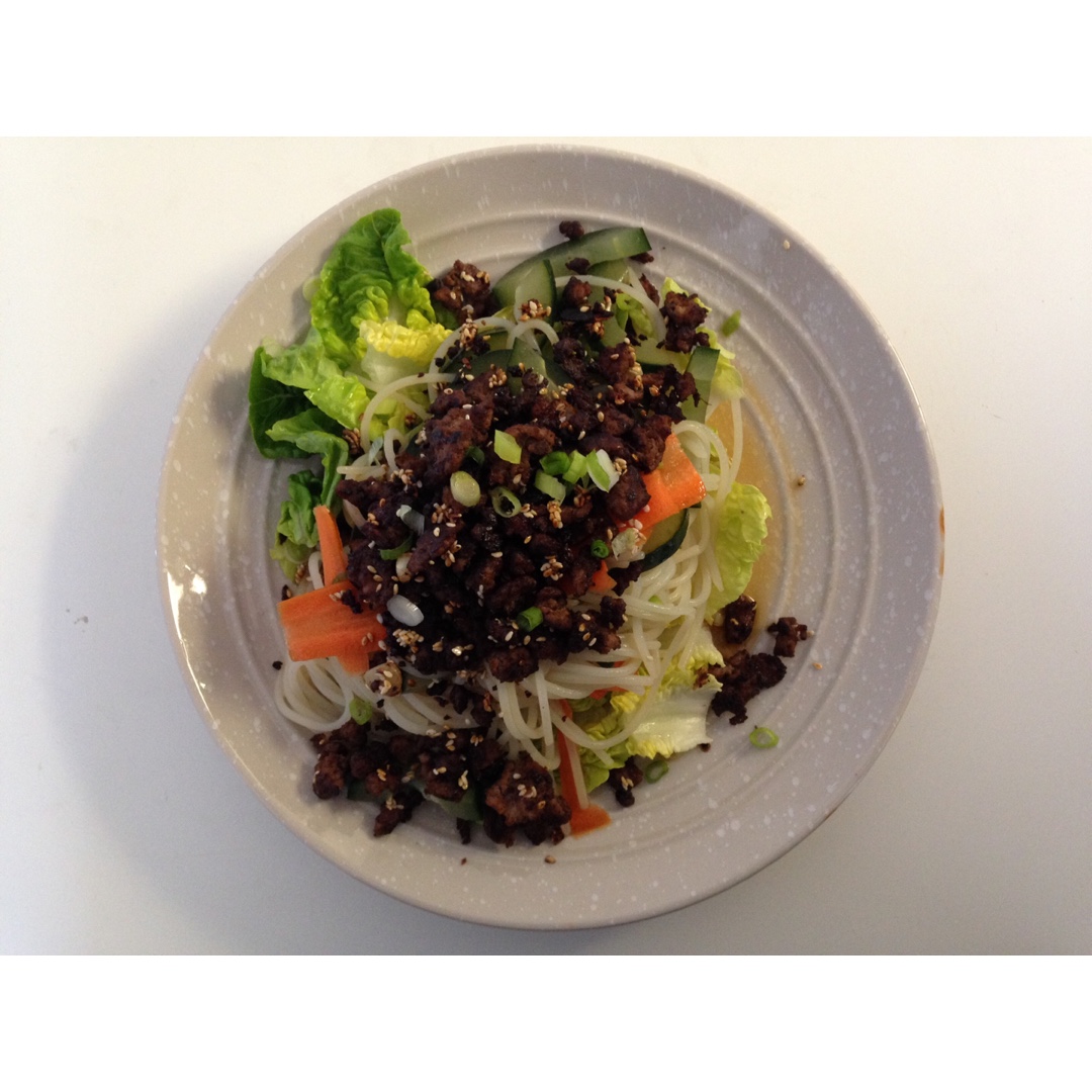 今天中午把最后剩的一份牛肉沙拉都吃掉了,这次粉是煮的,软软的,好好吃~菜谱保存好,以后可以自己做😁 #午餐•2016年8...