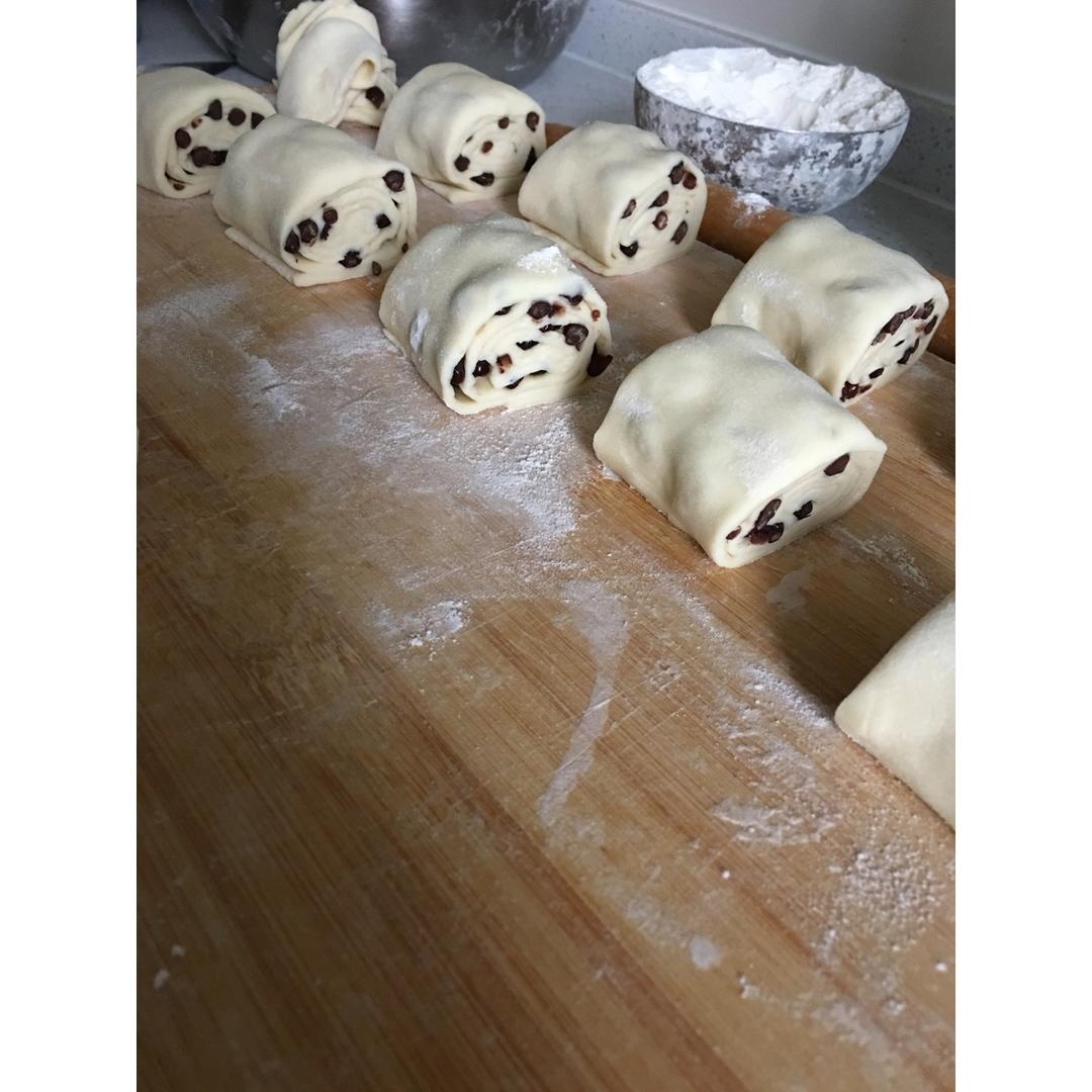普通面粉➕酵母,面团发酵1.5-2倍,擀薄皮摆平蜜豆卷起来切块,上火开锅蒸20分钟
