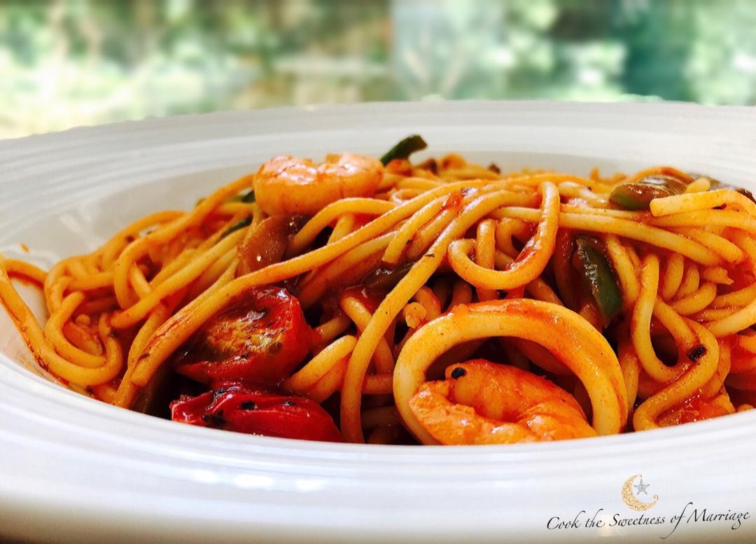 料超足的海鲜意粉😁😁😁@