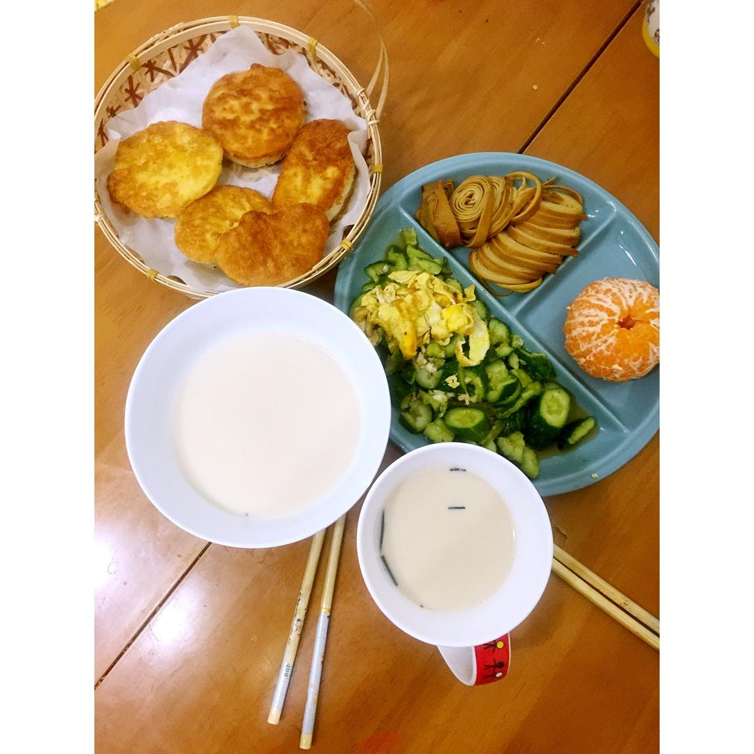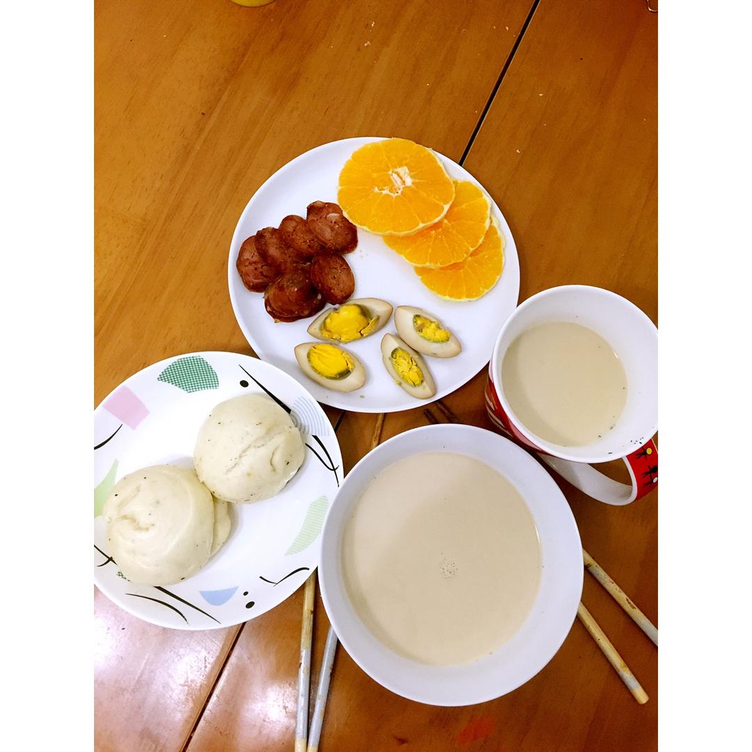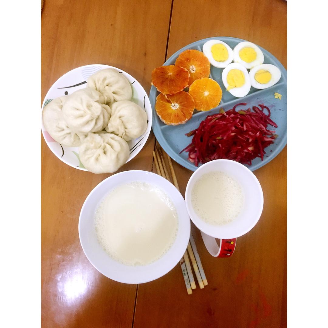国民早餐豆浆➕包子😌😌拌红心萝卜丝,水煮蛋,水果血橙