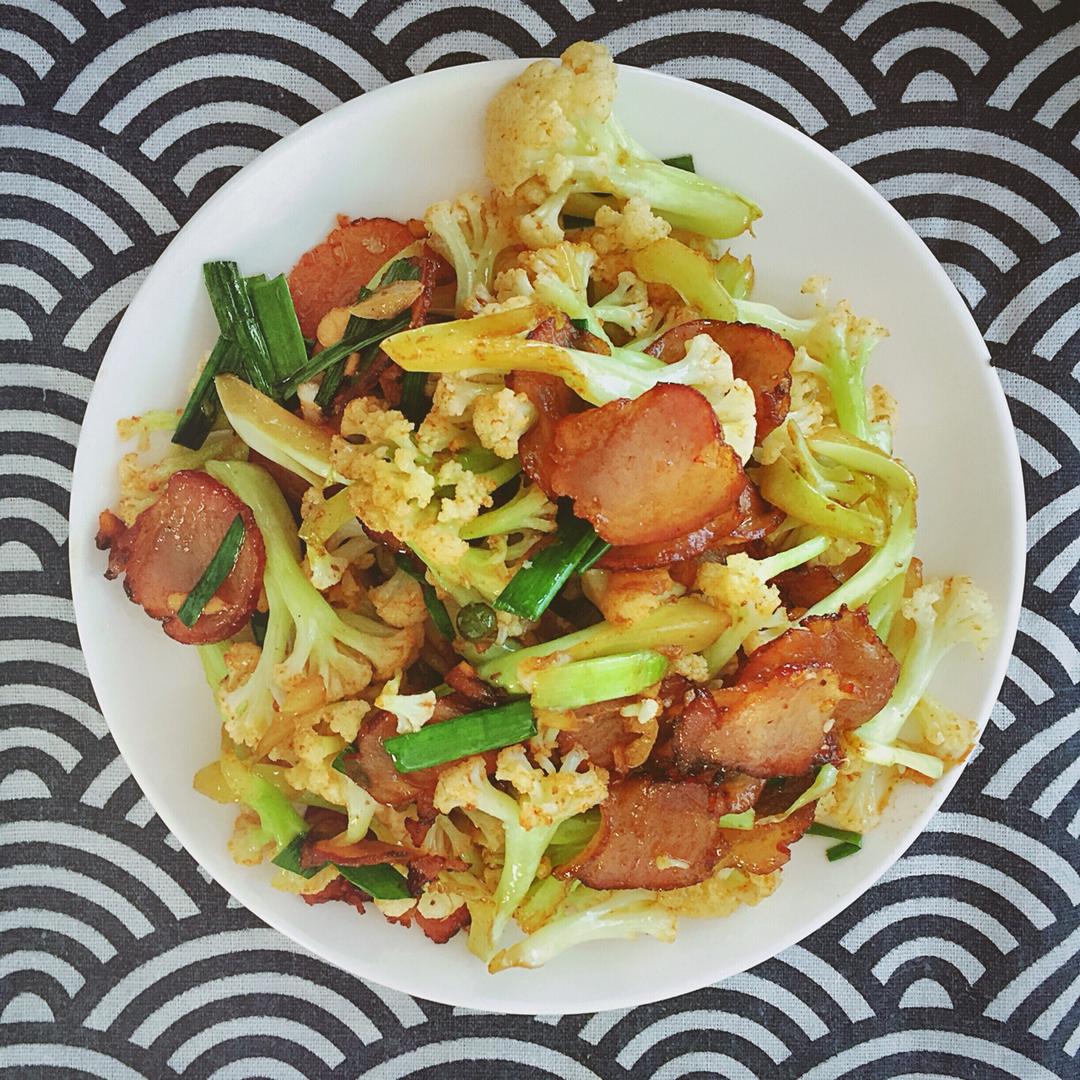 #孜然菜花炒腊肉#