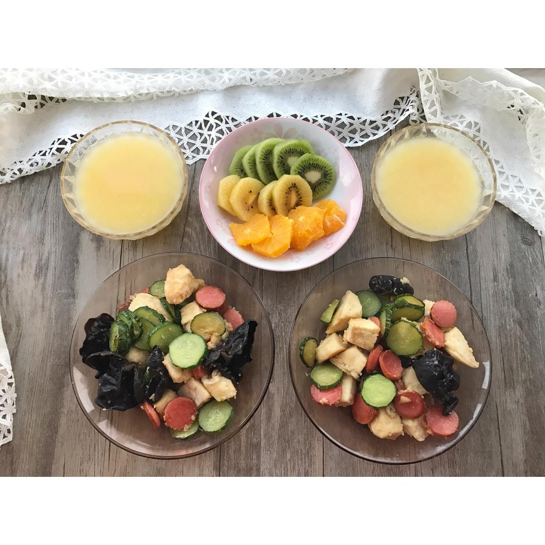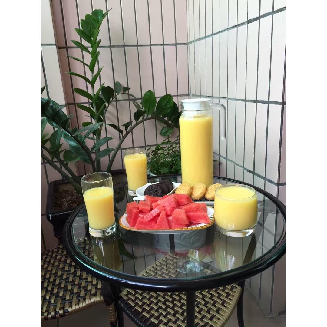 早餐 🌽汁、🍉、🌽饼、奥利奥饼干