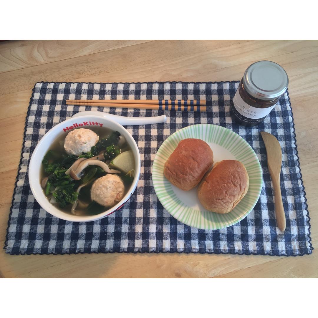 【蔬菜丸子汤+麦麸餐包配黑蜜】
