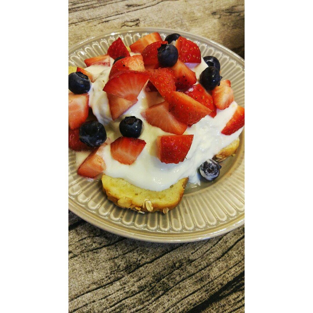 对半切开,淋上酸奶,撒上水果,别样的风味