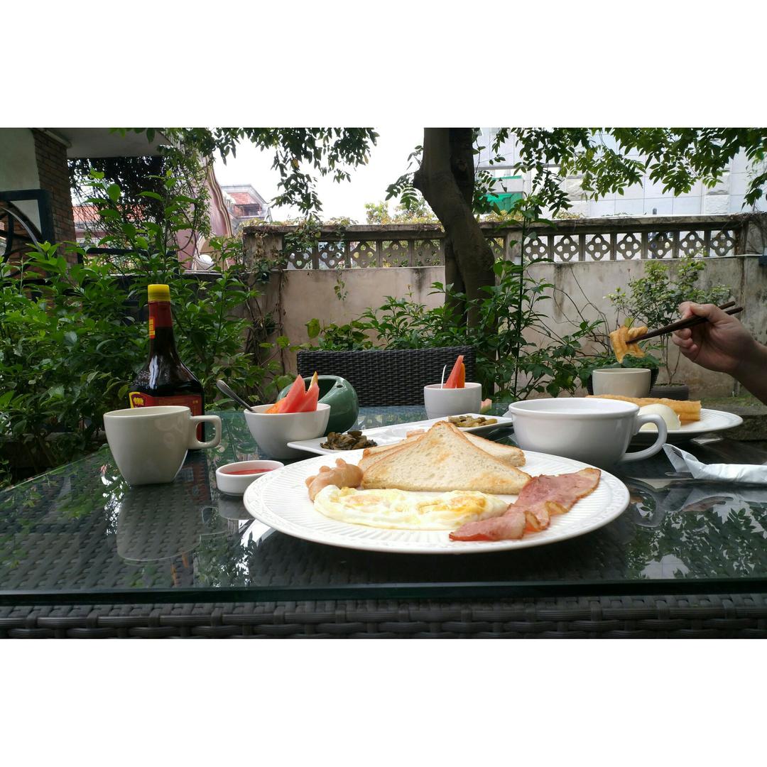 杨桃院子的早餐。树、猫和小狗,有点不想出门。