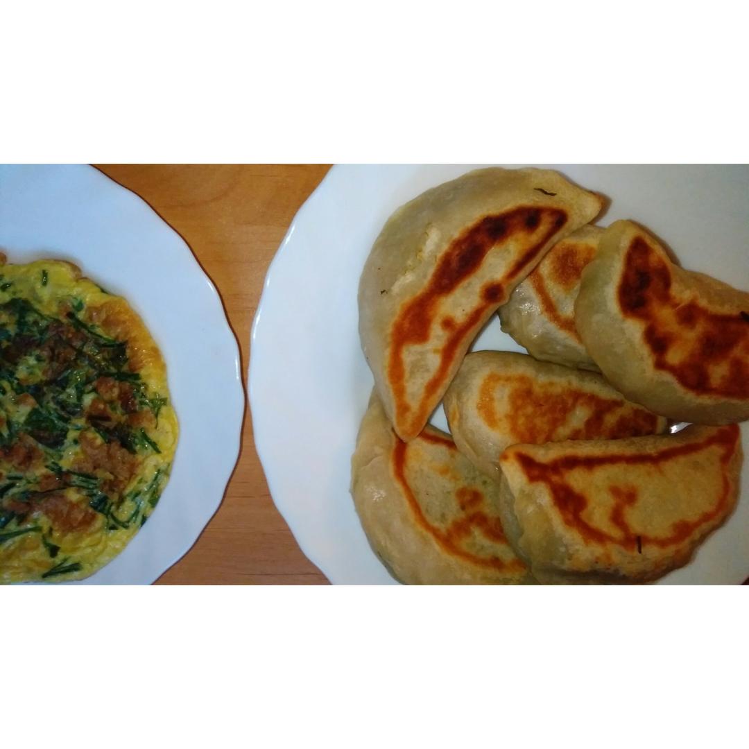 再刷韭菜盒子,最后一份野韭菜和自己种的时候今年第一茬韭菜,最后剩一小块馅舍不得扔,加个鸡蛋...