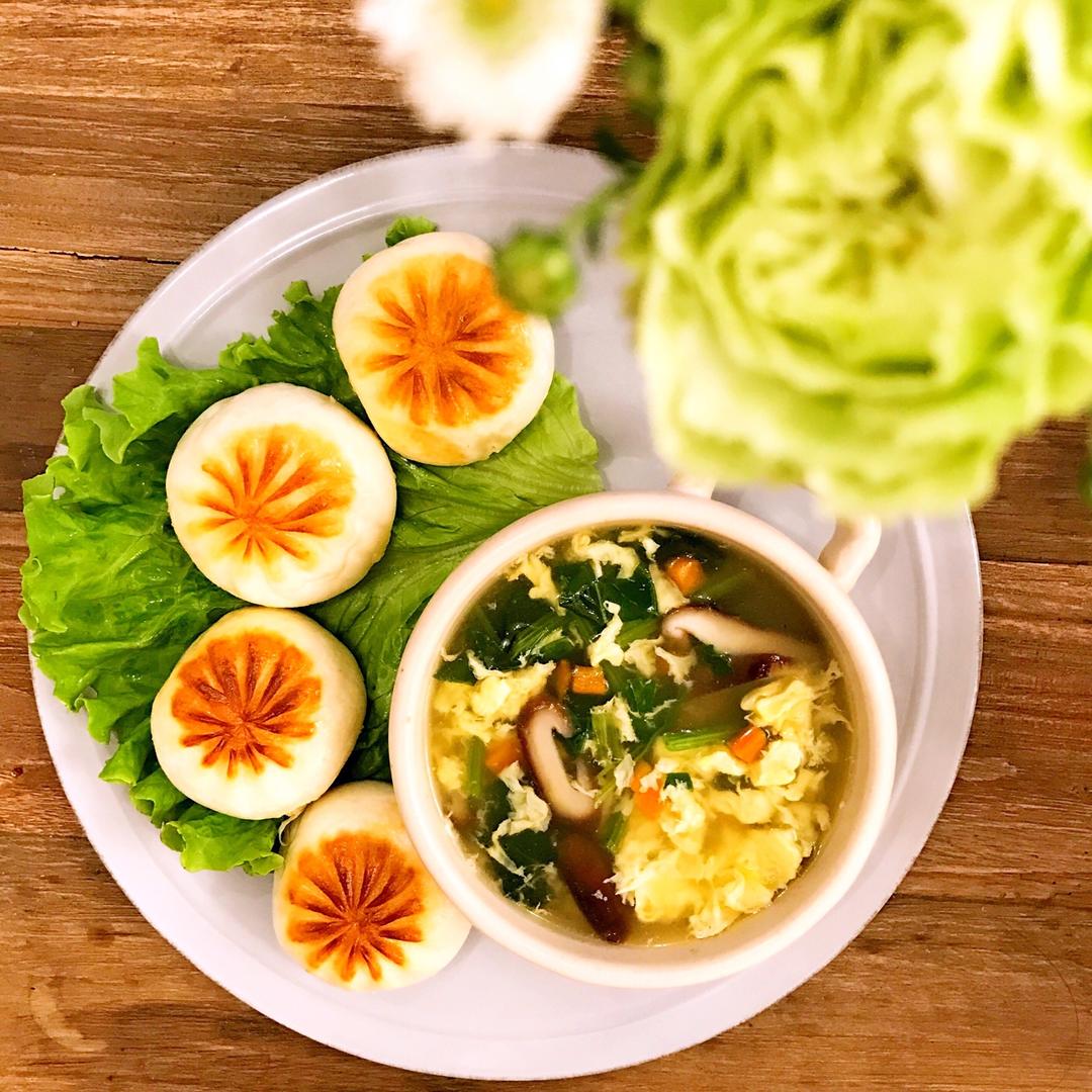 今日早餐:水煎包、芙蓉汤