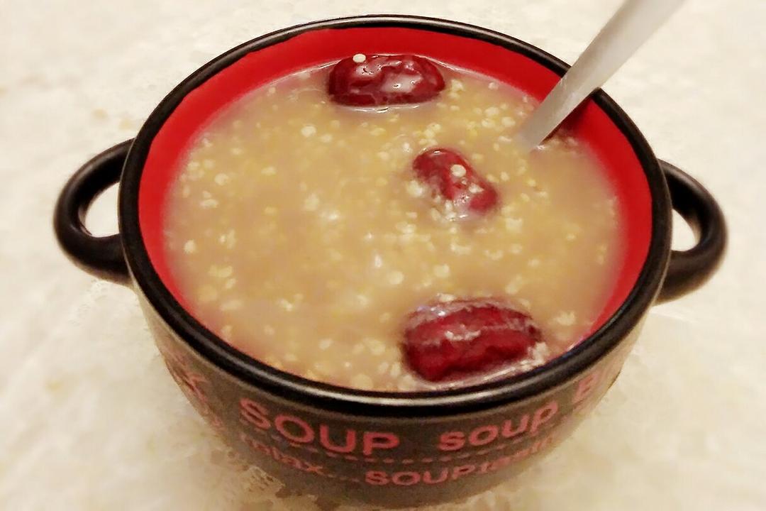 红糖红枣红豆薏仁阴米小米粥(名字好长😁😂)~