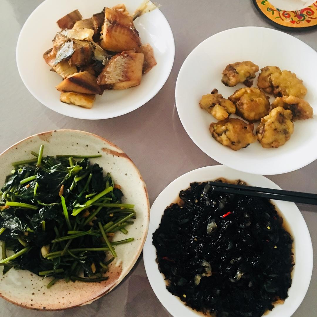 咸鱼、海蛎酥、紫菜拌海蜇皮