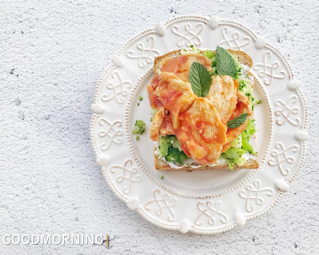 西兰花番茄肉多多厚切全麦吐司开放三明治+脱脂牛奶
