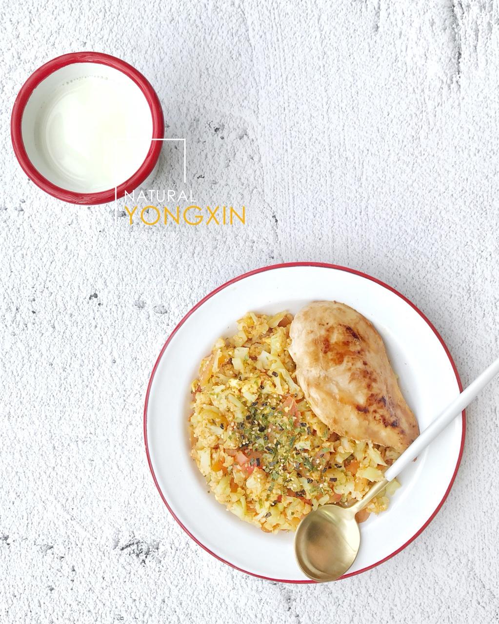 番茄花菜饭+煎鸡胸+牛奶