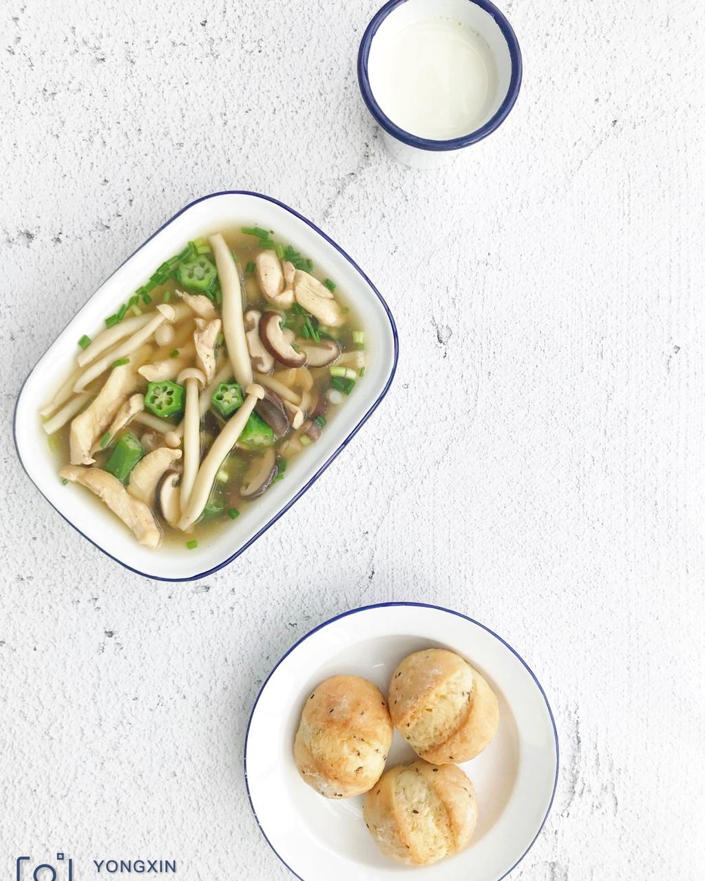 日式蘑菇炖鸡肉+法国球+脱脂奶