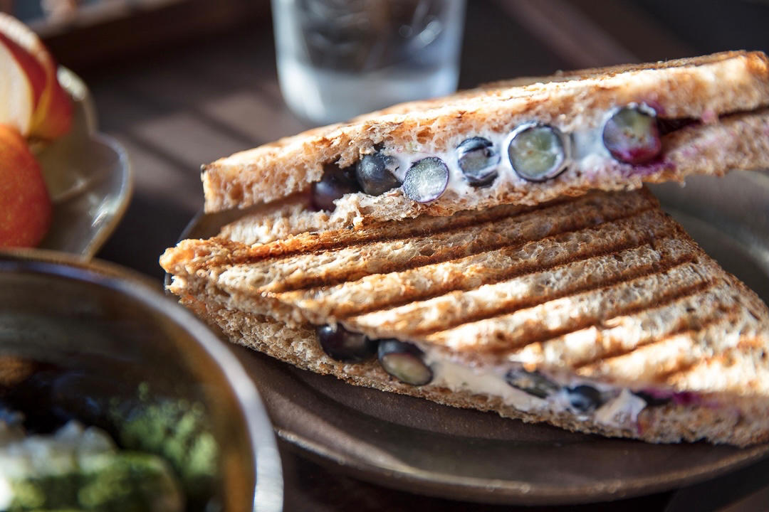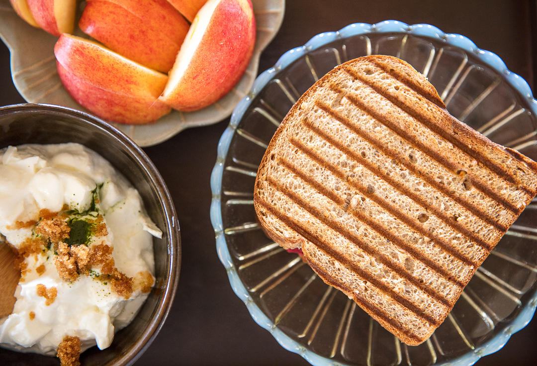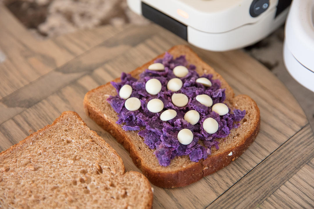今天早上的红豆草莓热压三明治。