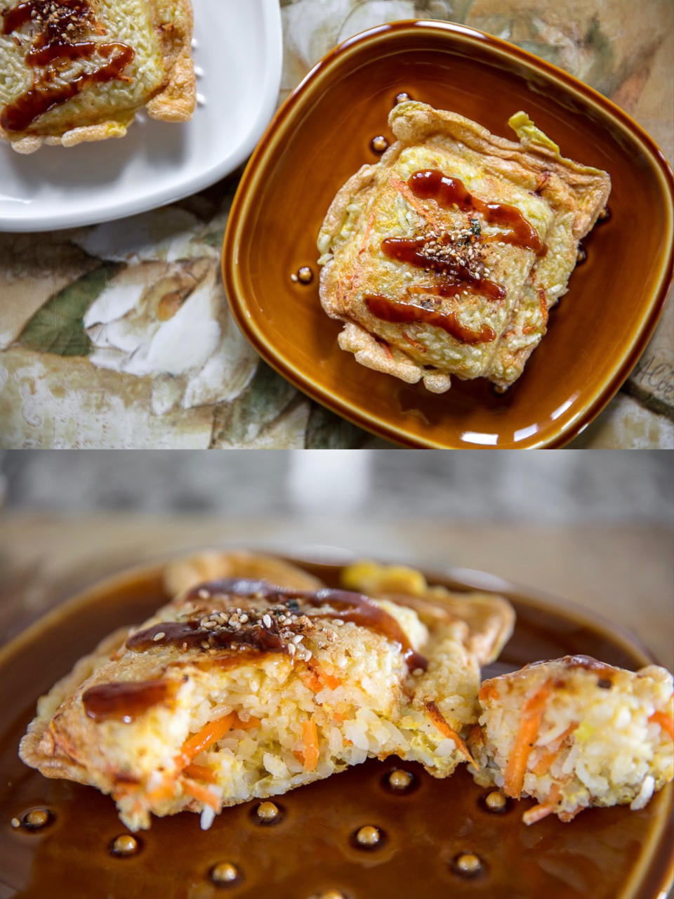热压大饭团,图2、3是昨天做的1.0版,自己也不知道自己在干嘛版。什么都想加点,又想想做基础版试试。我问小龙说你觉得再加...