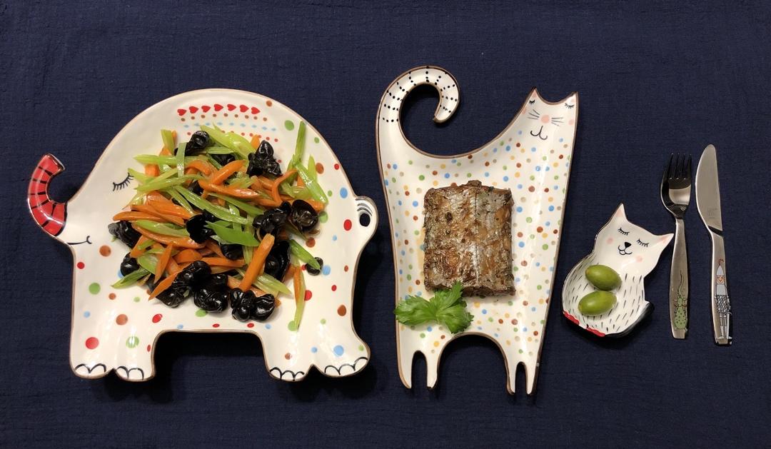 胡萝卜芹菜炒木耳又好看又好吃。