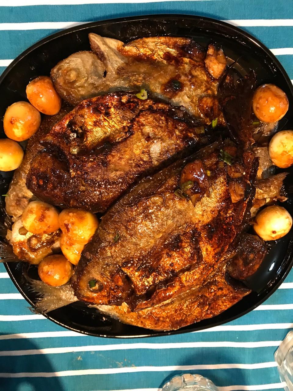 红烧小鲳鱼,把早上吃剩下的鹌鹑蛋放进去回个锅🎊🎉🌹