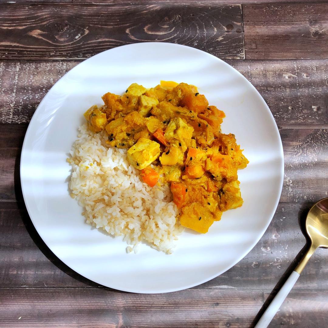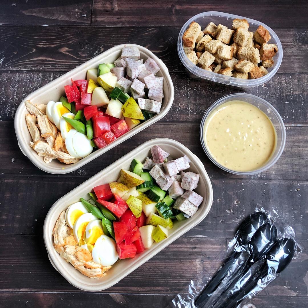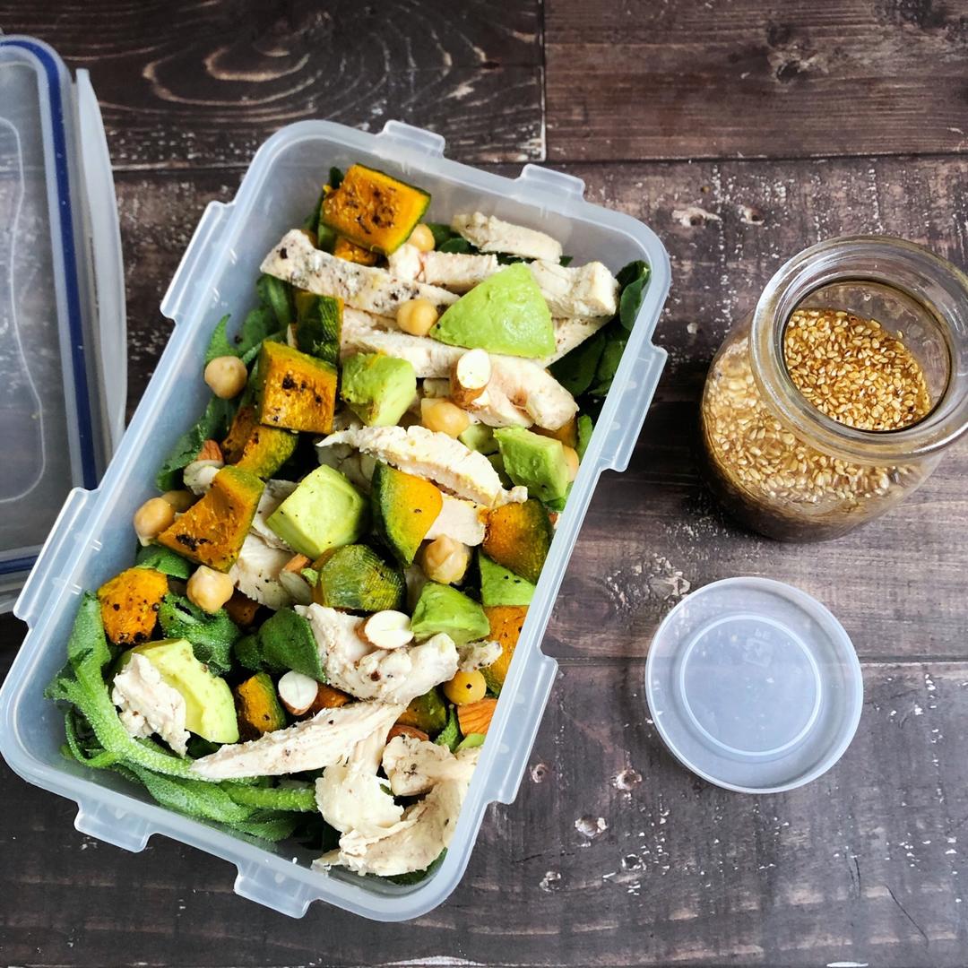鸡肉烤南瓜沙拉配和风芝麻沙拉汁