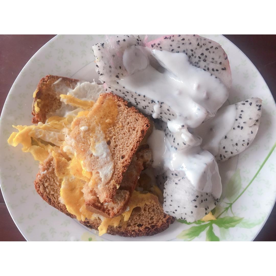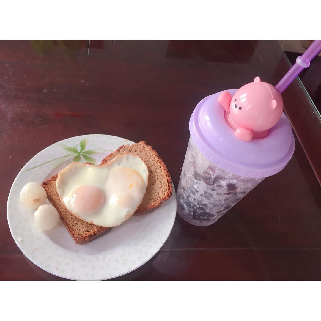 荔枝,自制红糖全麦吐司,无油煎鸡蛋,隔夜冷泡咖啡。昨晚跟🐿️男票吃的油油的黄记煌,今天要吃清淡点了。 #早餐•2018年...