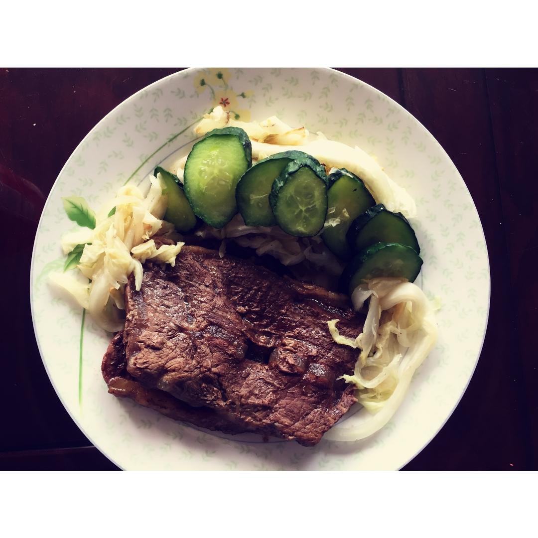 拍了集体照(图二三是团队服),赶回家做饭吃。不想吃米饭,于是用华夫饼机和烤箱尝试着做了牛排,撒了白胡椒粉。烤的时候炒了新...