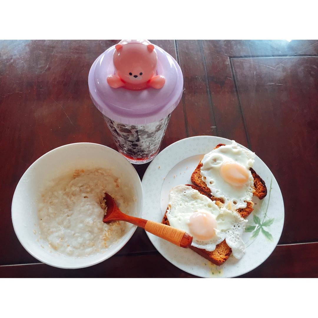 又想喝粥又想吃吐司的馋嘴温吞水选择了……吐司铺鸡蛋,自制酸奶泡燕麦片,和一如既往的黑咖啡。 #早餐•2018年5月17日...