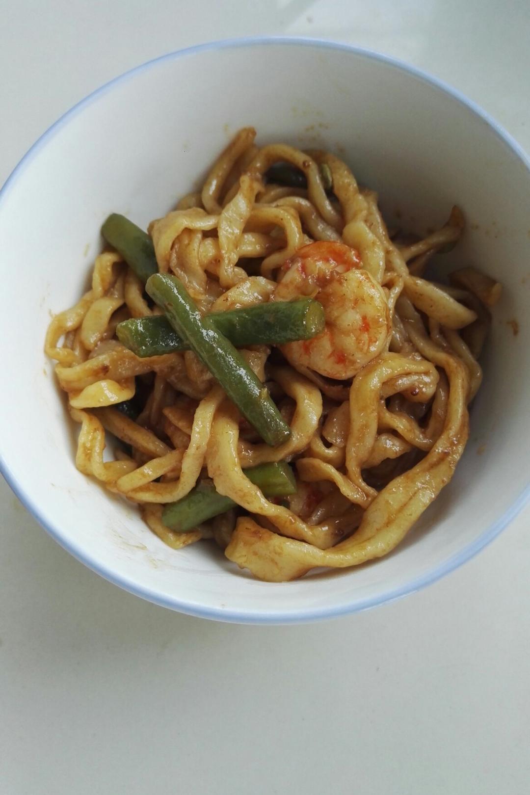 今天简单吃点,做了豆角焖面😊面条是妈妈亲手擀的,我焖的面