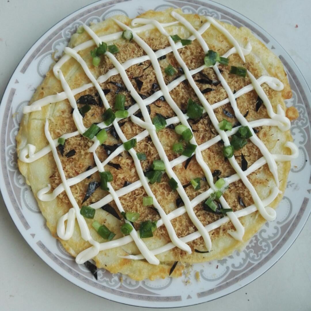 今天做了大阪烧,没有木鱼花,用自制肉松也不错,让妈妈尝尝,香椿鸡蛋饼,蛋炒饭😊