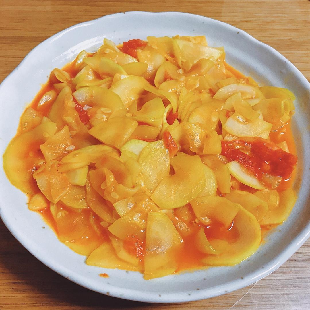 日本的西葫芦一点都不绿...这种调味我自己可能不是特别喜欢 比起酸甜口 个人感觉还是喜欢酱油口一点儿。 #午餐•2018...