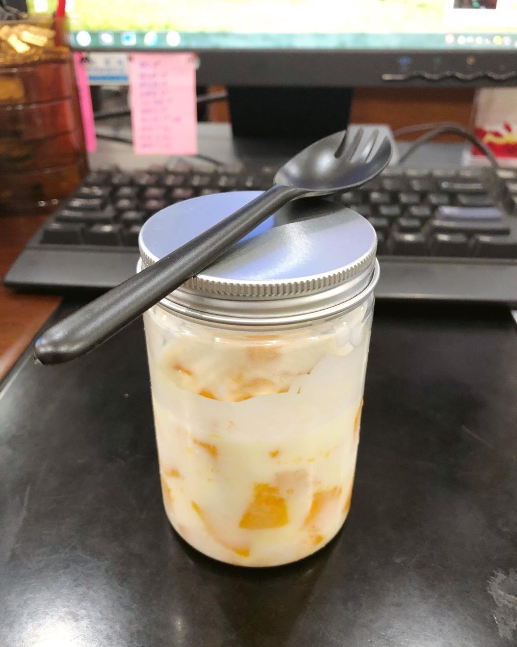 上班第一天,简单却不失营养的手工芒果酸奶。