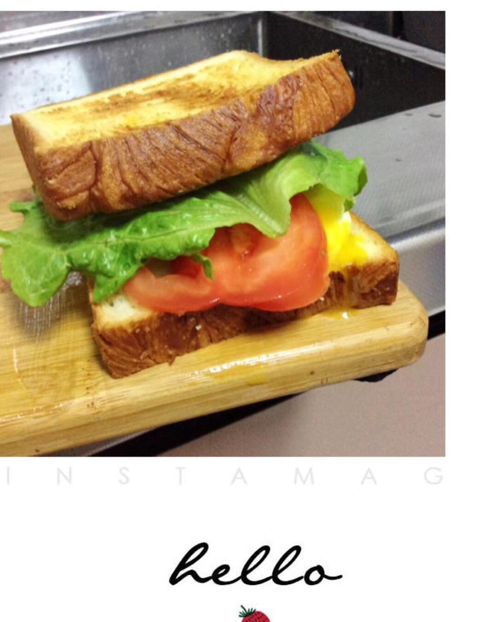经典配料,生菜,西红柿,午餐肉,鸡蛋。