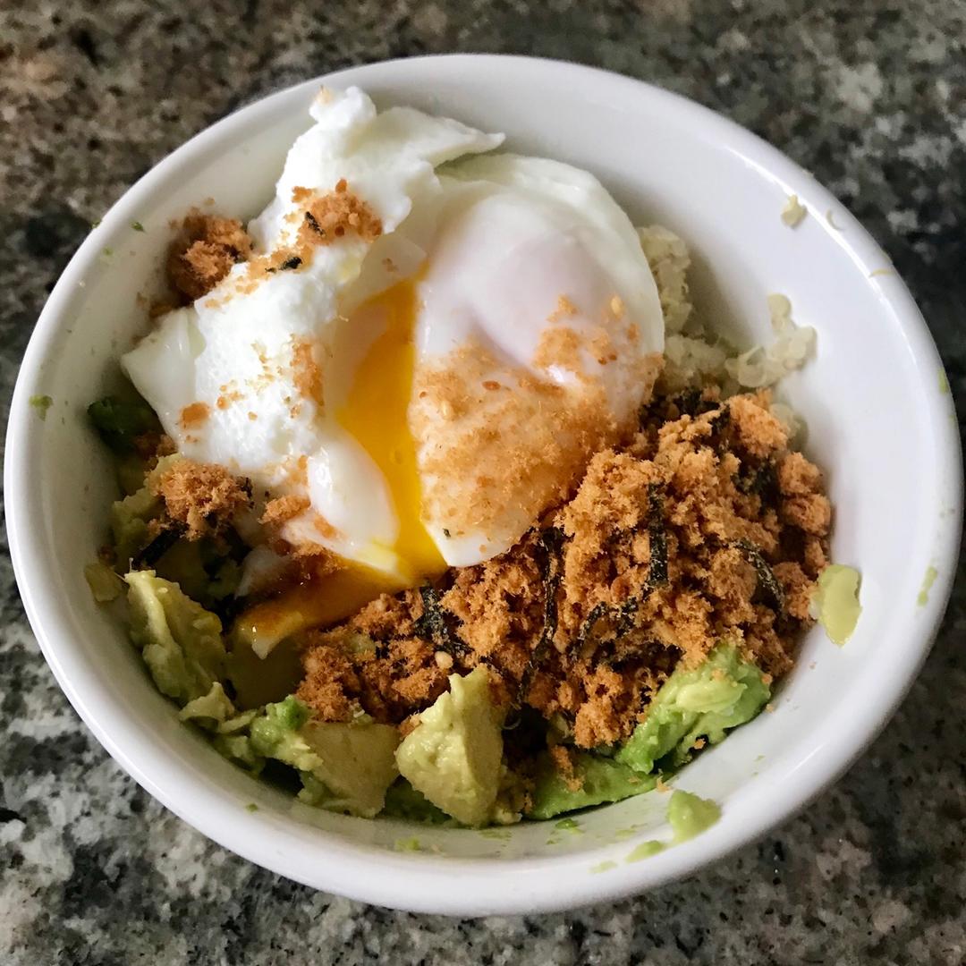 牛油果🥑,溏心蛋,三文鱼肉松和藜麦,营养健康