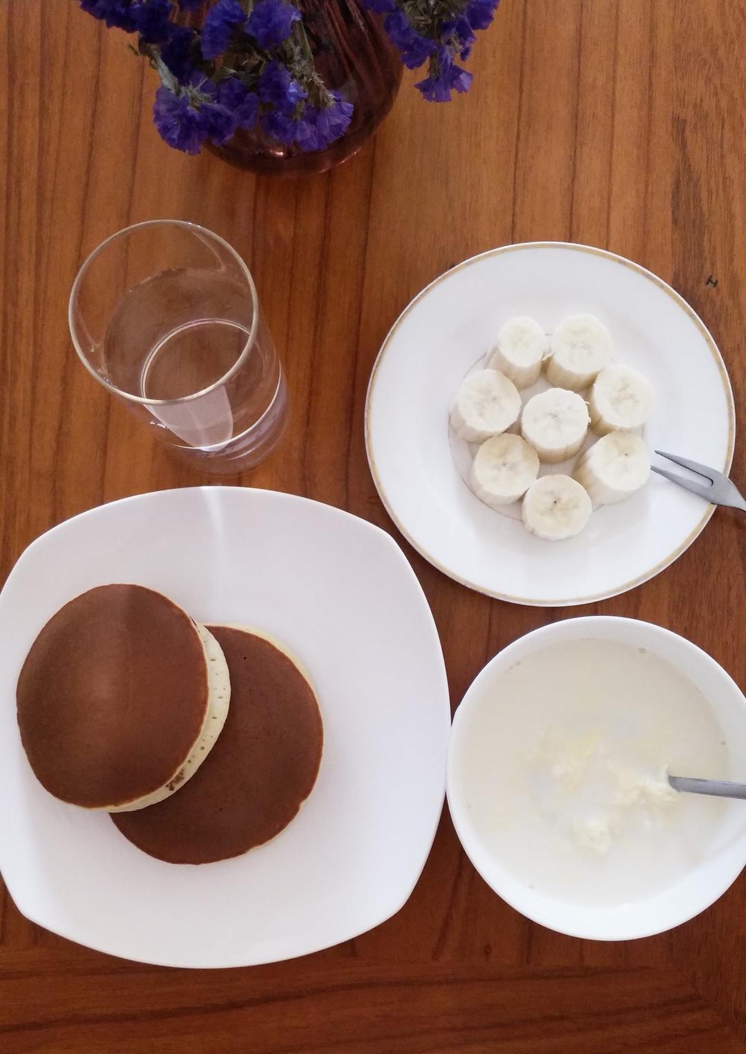 奶昔泡蛋+红豆沙铜锣烧+一根香蕉、一杯水!早餐元气满满✌