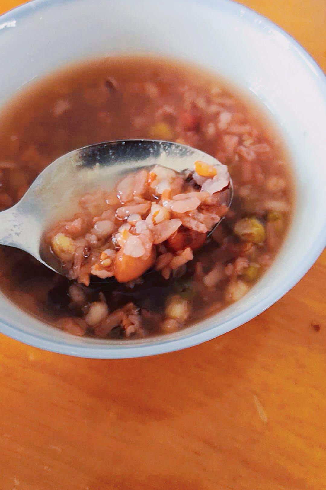 剩的一点儿姜黄腰果奶泡了燕麦和荞麦,加个李子椰子和枫糖,开吃。