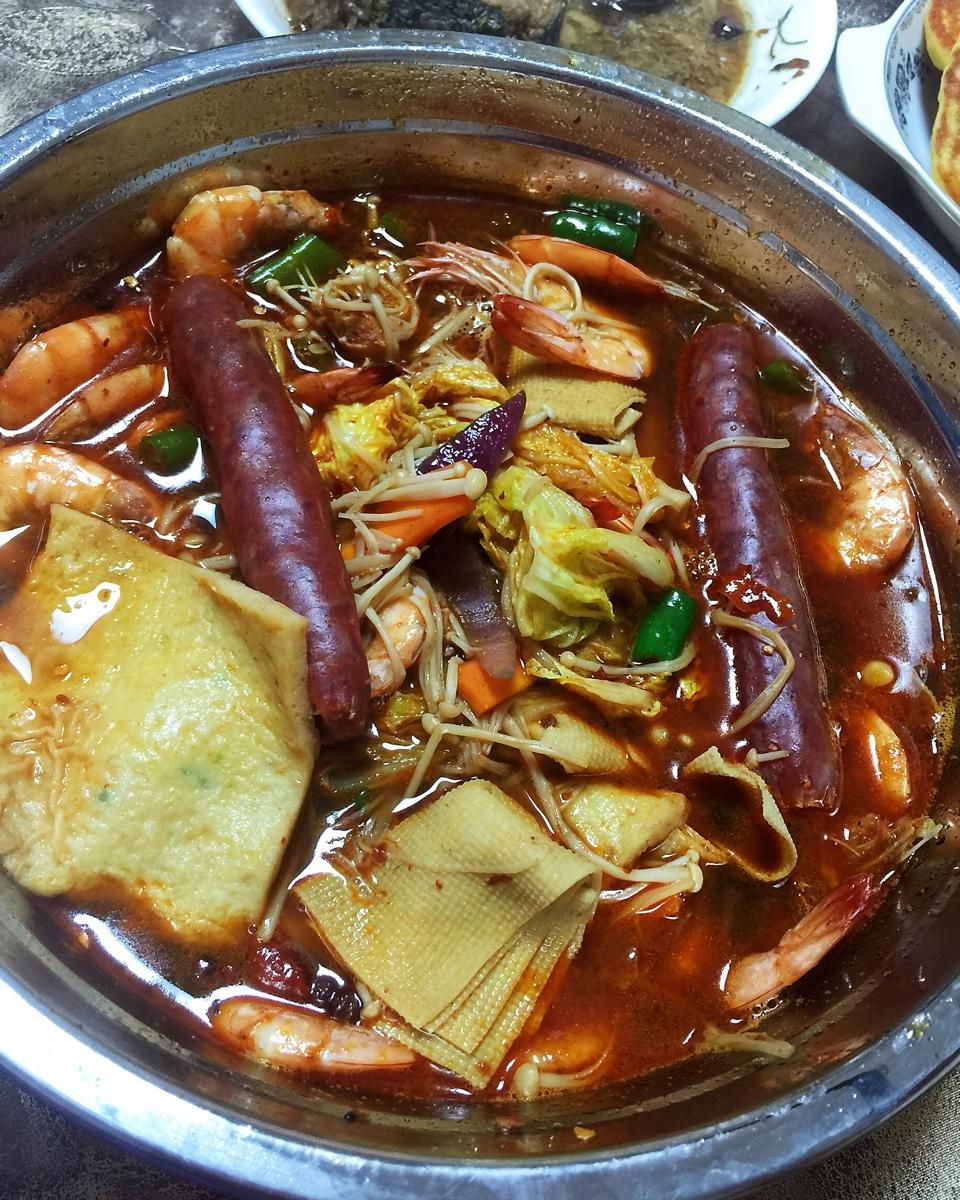 昨天毛血旺的高汤没舍得扔,再加点菜又是一顿😄