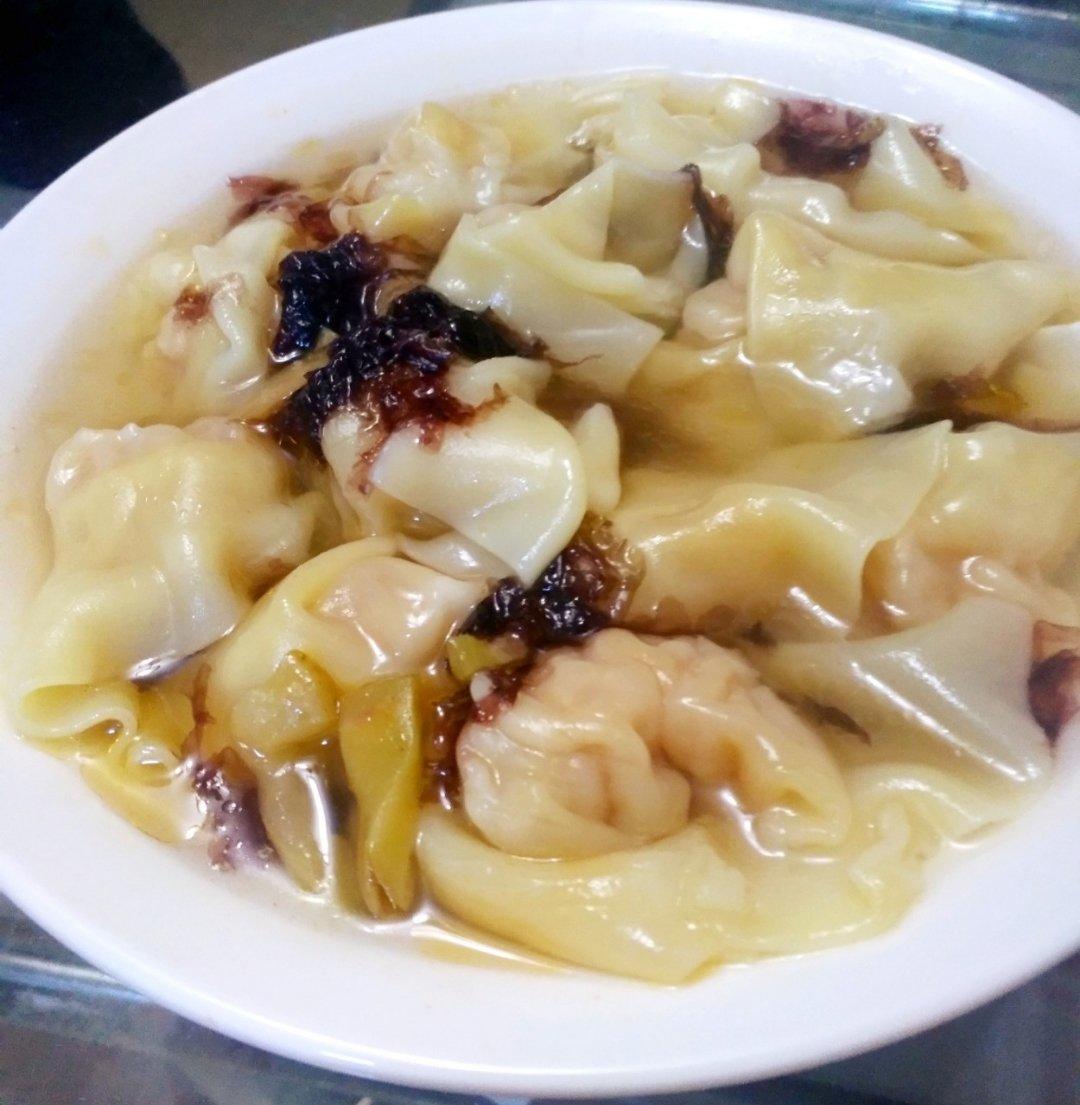 一大碗鲜肉馄饨当夜宵,当然是两个人吃。