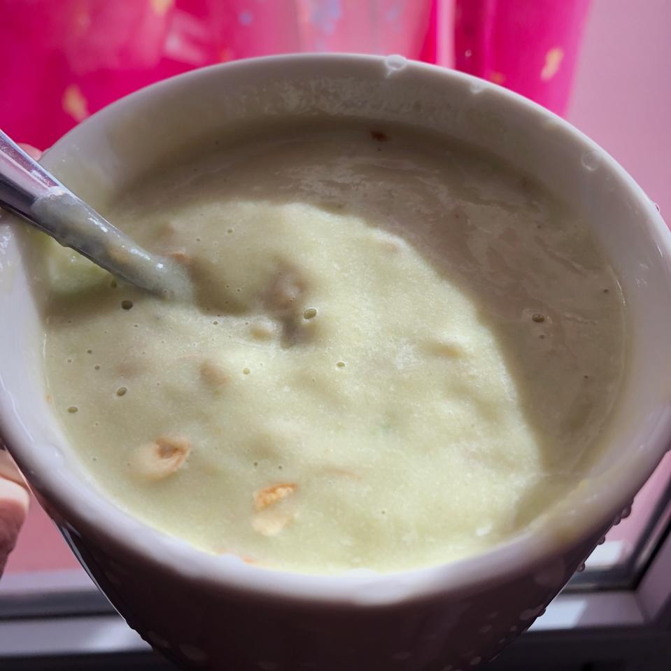 青木瓜牛油果奶昔,拌燕麦坚果,自然的味道,甜度略低。
