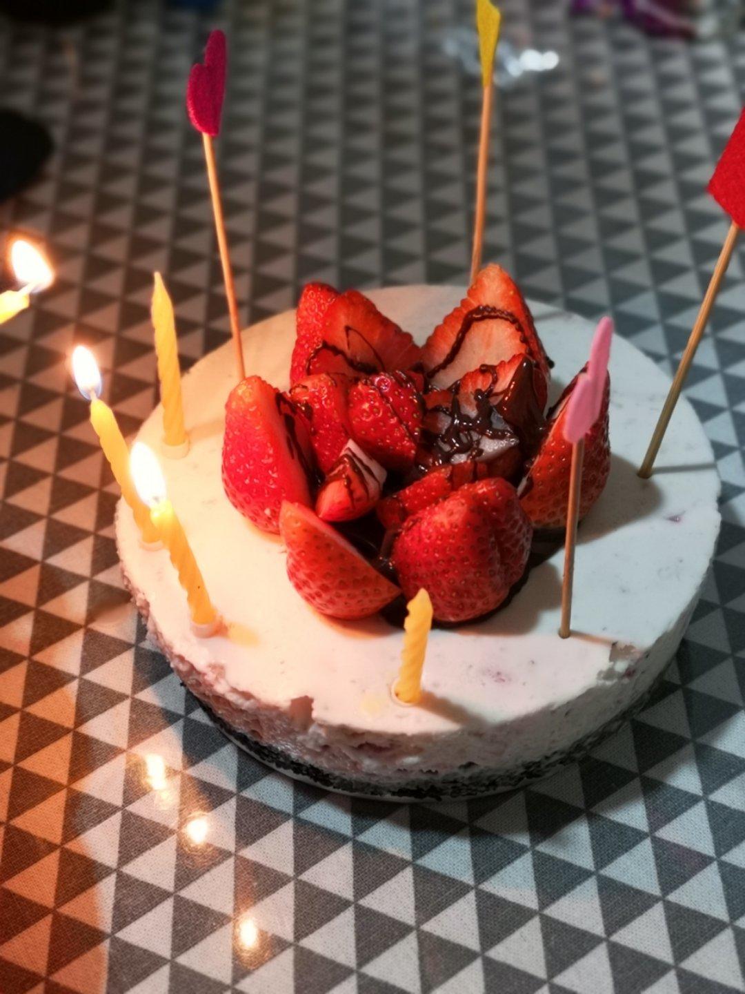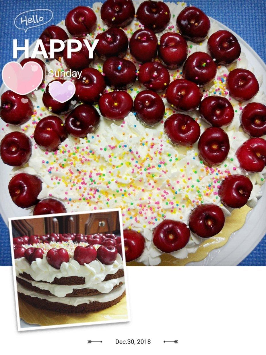 祝我生日快乐!蛋糕清新,一点不腻,奥利奥饼底有点硬,下次换蛋糕底试试,一家三口吃光啦,六寸的