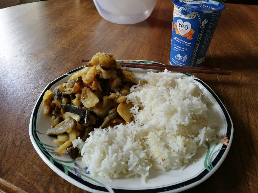茄子土豆拼饭 + 🍯酸奶
