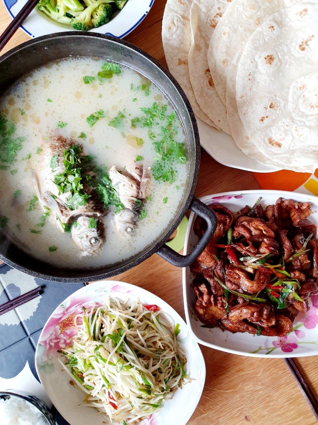 荷叶饼辣肉片 鲫鱼汤