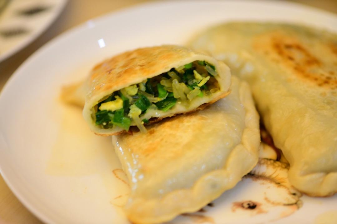 大个韭菜盒子,用压面机后整形方便