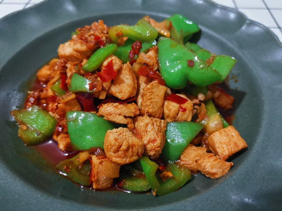 今日晚餐:辣子鸡丁、煎牛排、青笋肉片,外加好喝的果味啤酒
