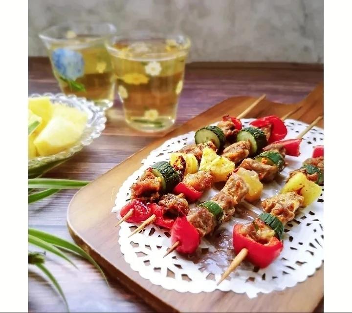 肉肉烤得滋滋冒油,蔬菜也被滋润了。搭配蔬菜,平衡了荤素和营养,颜色也是美美哒。