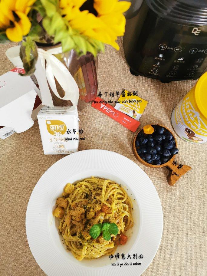 咖喱意大利面、百菲酪水牛奶、水果…