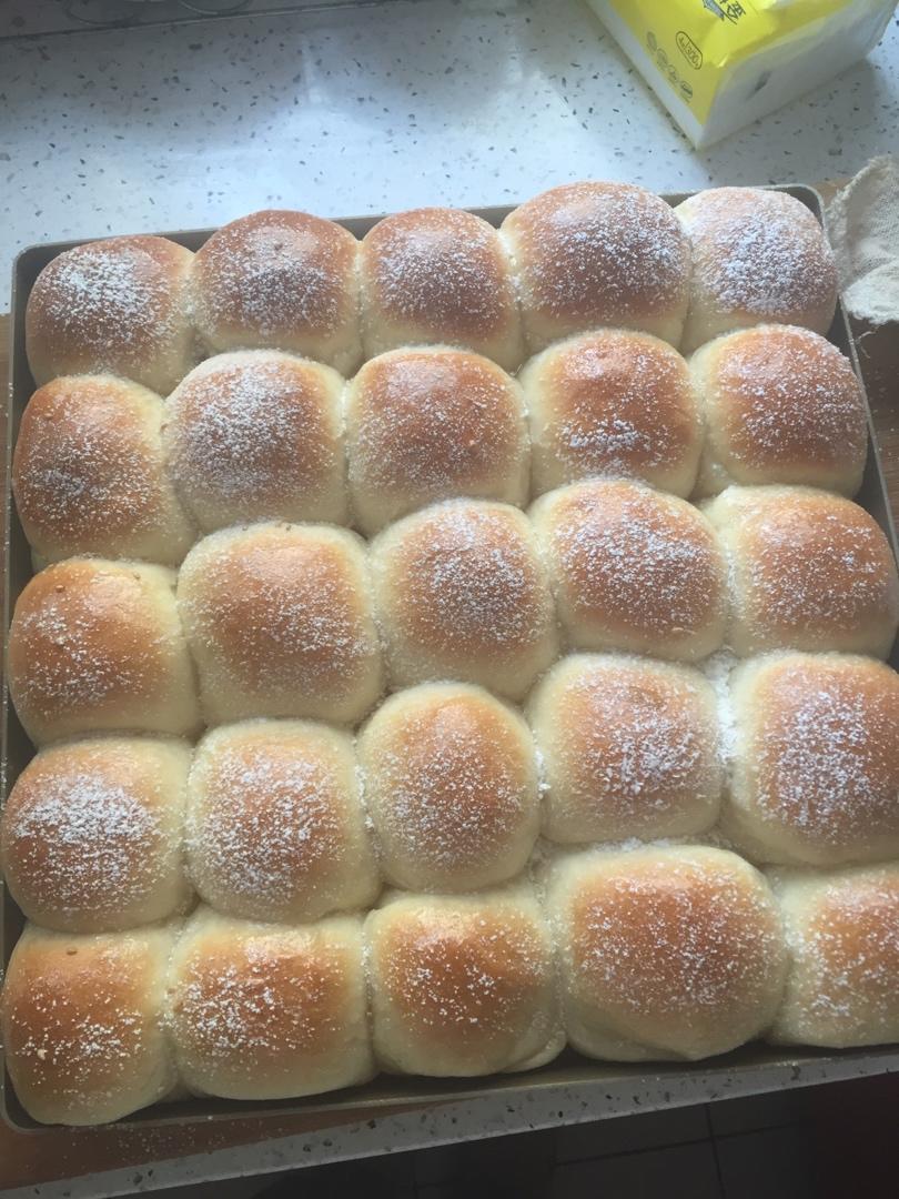 刷完蜂蜜上边撒了一层糖粉,软软的太好吃了,一会儿就吃好几个。