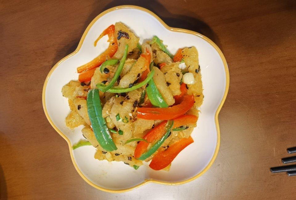 灯笼椒豆豉炒柚子