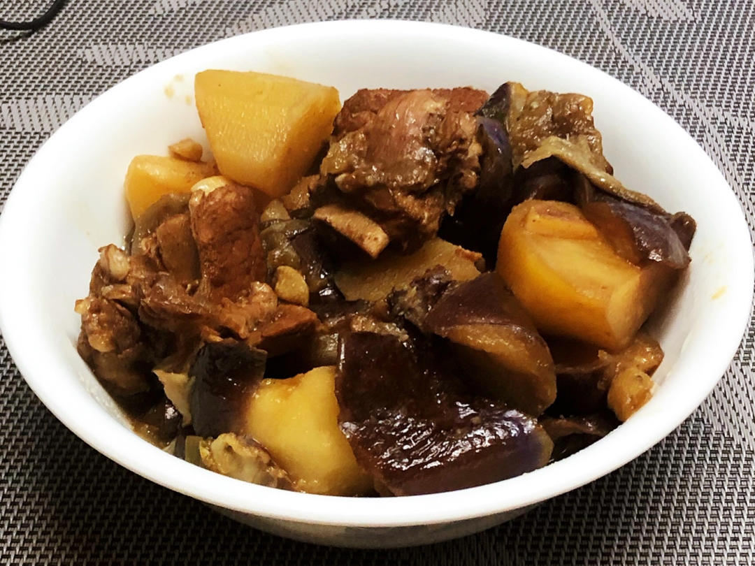 传统的炒锅做的排骨炖土豆茄子🥣