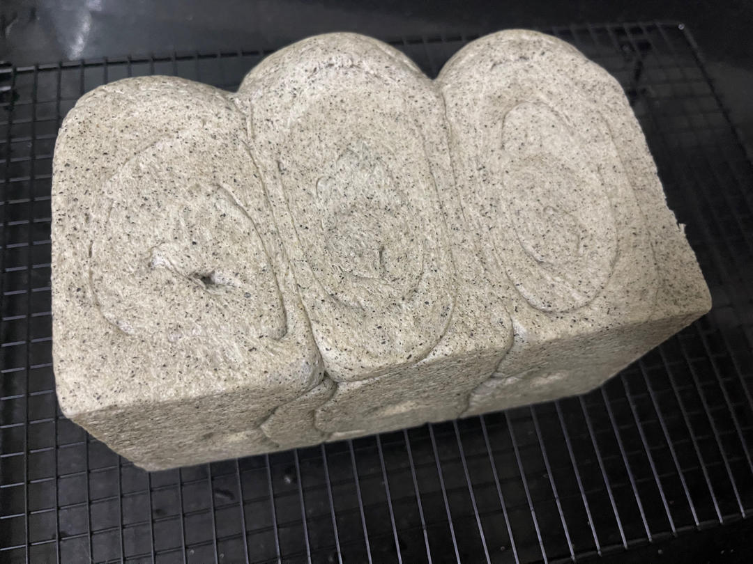 粉类总量减半,杂粮用了一半的三分之二,水量看情况加的,没称重,还加了牛奶,190度60分钟,四边有点焦,顶部上色不是很明...