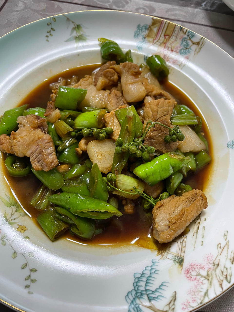 辣椒炒肉,醋溜苦瓜,自己吃的菜,下饭就行。