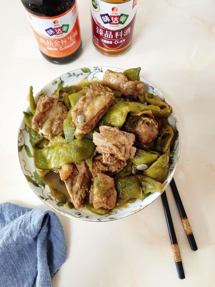 排骨炖豆角。用味达美臻品料酒和味达美尚品金标生抽炖的东北油豆角特别香!